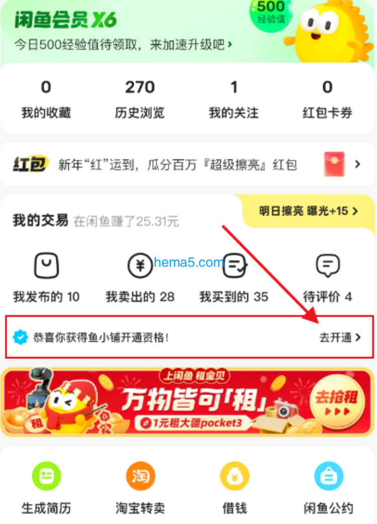 闲鱼邀请开通鱼小铺: